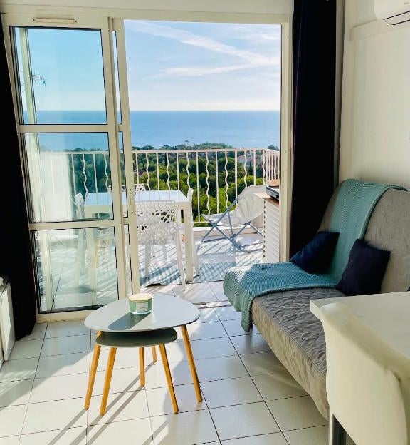 Venez vous ressourcer dans cet appartement lumineux de 28m2, offrant une vue mer panoramique et un service de conciergerie personnalisé pour votre confort.
