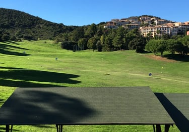 Un véritable neuf trous admirablement situé ! Niché entre les roches rouges de l'Estérel et surplombant la magnifique baie d'Agay bleu Azur, le Golf Cap Esterel propose un parcours très interressant et attractif ouvert toute l'année. Vous apprécierez la vue saisissante sur la Méditerranée et les falaises ocres de l'estérel. Que vous soyez débutants, premier index ou compétiteur index à 1 ou 2 chiffres, ce parcours restera facile à jouer. Toutefois, les difficultés techniques demanderont à chacun réflexion sur le choix du bon club pour bien scorer. Un practice long de plus de 250 mètres permettra à chacun de pouvoir travailler ses longs coups. Des moniteurs diplômés d'Etat sont à votre disposition pour un enseignement adapté et tous types de niveaux et de joueurs. Un lieu incontournable à ne pas manquer !